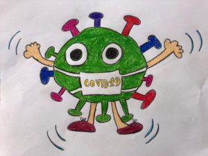 “Covid19, per gli amici Coronavirus, è talmente piccolo che noi non riusciamo a vederlo, ci vogliono delle lenti speciali che solo i dottori e gli scienziati hanno. Di lui sappiamo ancora poco. Viene da un paese lontanissimo, dopo aver attraversato oceani e montagne correndo velocemente da una persona all’altra. É un parente di altri Virus che già conosciamo perché vivono qui ormai da anni, infatti i dottori hanno già trovato un modo per renderli inoffensivi.